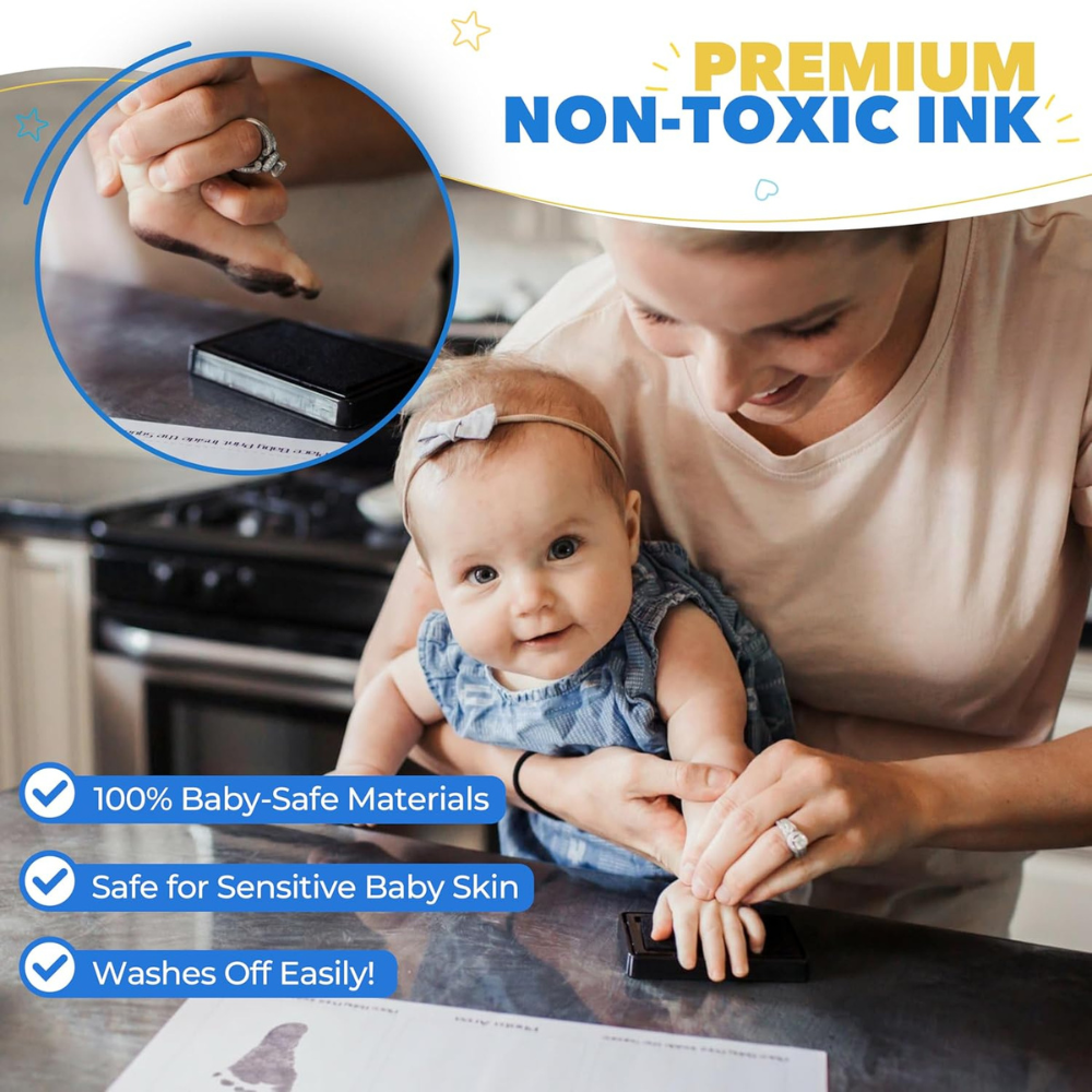 Ink Pad : Included non-toxic ink pad for creating safe hand and footprint impressions, suitable for sensitive baby skin and easily washable