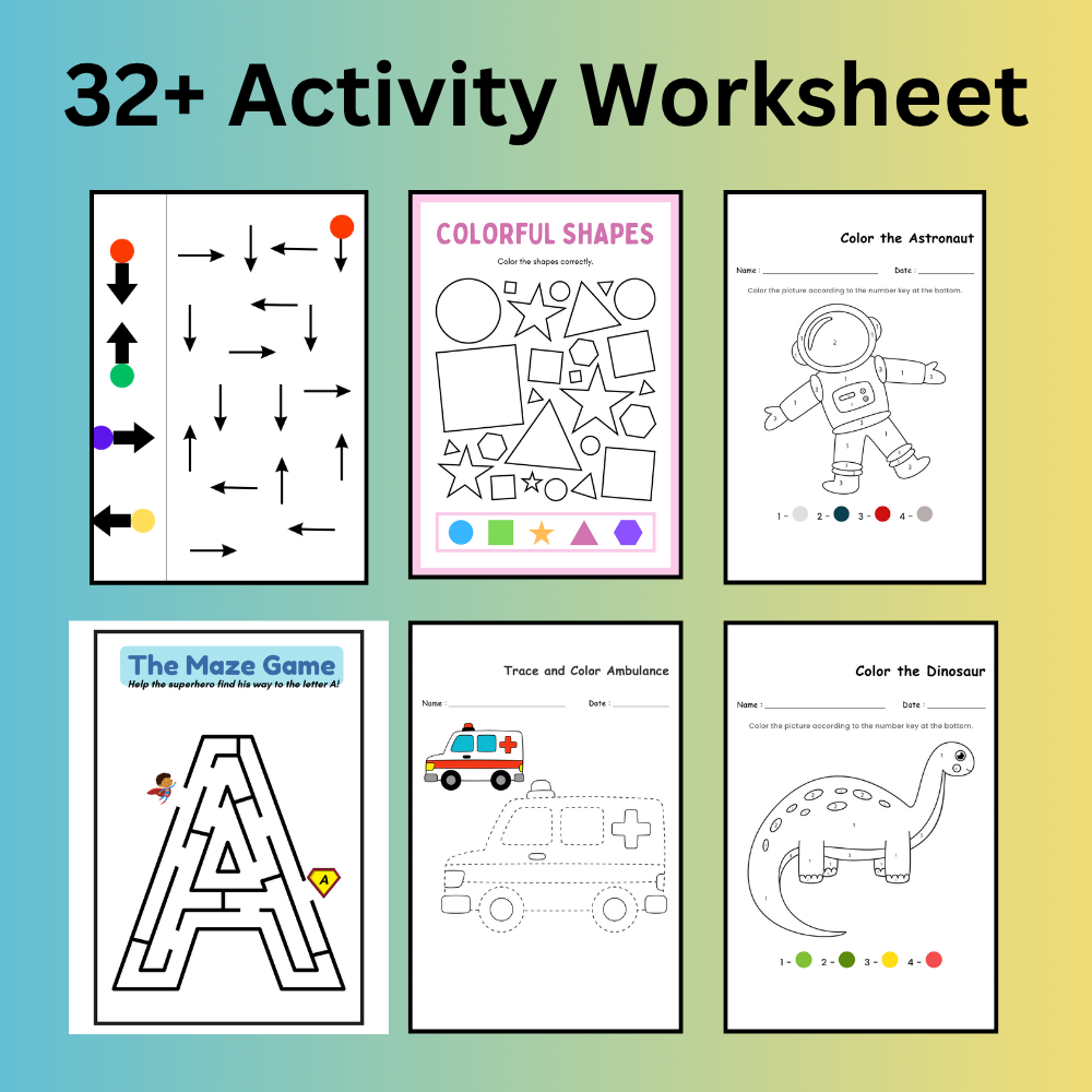 32+ Activity Sheet ( Size A5Β 21cm X 15cm ) ( It include Dot, Coloring, Puzzle, Mind Game and many more)